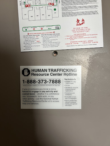 There was a human trafficking warning sign on the door, which was alarming. The door lock was flimsy, unlike the nickel lock in my first room. There was no extra security lock, so I had to put a chair behind the door to feel somewhat secure.