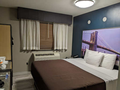 The problem with this hotel is the thoroughly horrific location. There is no coffee shop, no fun NYC breakfast, nothing, nada. Jamaica (this town this hotel is in) is a total tourist wasteland, so you can do nothing fun from this hotel except for try to get to Manhattan as fast as possible. Actually, this hotel is not even on a real street; it has this scary back entrance from a side street. Luckily my girl is brave, most women I know would have nothing to do with this situation.