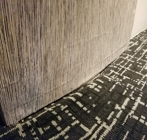 Our bed was broken, causing the mattress to sag, but the door covering the mini fridge in the desk fell off the first time I opened it, the blinds did little to nothing to keep the lights of “Wicked “ marquee from keeping the room look like dusk all night, the TV frame was cracked, the door had a half inch gap still when you pressed it closed (so we moved the chair to make sure it didn’t open).