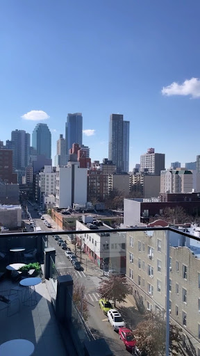 This is a new building and has multiple outdoor spaces on the 1st floor, 6th, & 8th. The views of the city is beautiful!