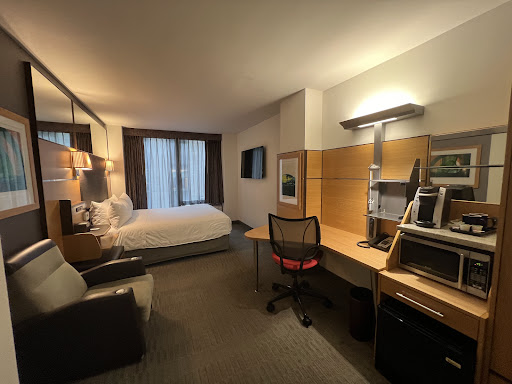 The room was a perfect retreat after a busy day in the city. Modern and stylish, it featured comfortable furnishings and thoughtful amenities. The bed was incredibly cozy, ensuring a restful night’s sleep. I particularly appreciated the in-room Keurig coffee maker, complimentary bottled water, and high-speed Wi-Fi. The floor-to-ceiling windows offered stunning views of the city skyline, adding an extra touch of magic to my stay.