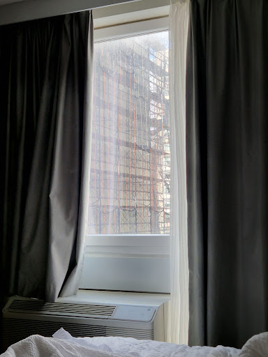 What I do know is the main picture of the front of this place is fake news. The picture of the building with a driveway and some folks walking around is not what it looks like. I think the pic is an artist rendering before it was built. There is no driveway. Other pictures too are misleading. There is no Manhatten view, at least in my room that claimed there was.