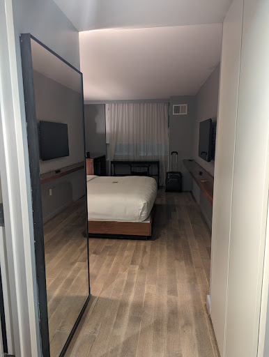 Read moreIt was conveniently located and the staff were nice, but everything else was very bad. The room was in shabby condition with stains on the carpeting and the window shade, the lights randomly turned on and off by themselves, the shower tile had black marks all over it, and the shower head was spraying water where it joins the supply line. In general the bathroom was just gross. There was only one chair in the room, no glasses or paper cups that could be used in the microwave, and no body lotion (only two small bottles of shampoo and body wash). The lobby was tiny and only one of the elevators worked (it only held about four adults at a time). The only amenities were a gym in the basement and free WiFi, which didn't work half the time we were there. If all of that were not enough, though, there is also a restaurant that holds private events inside the building and our room was right above it. So, we got back to the room around 8 PM on Saturday night and very soon afterwards some godawful dance music started pumping heavy bass at high volume and did not stop until about 1 AM. I was unwillingly awake for hours. The next day we saw guys moving huge speakers out of the space. We hoped that was the end of it, but no, we came back later that afternoon and the music was pumping at even higher volume than the night before, which I didn't think was even possible without destroying the structural integrity of the building. The DJ was yelling and the crowd was cheering, while I was cursing and writing this review. Based on how loud it was in our room, I can only assume that the people at the event have permanently damaged their hearing. Perhaps this hotel is a deal when it's not the holiday high time (at least if you plan to only be in the room for a few hours at night), but I can't even bring myself to state how much the nightly rate was jacked up while we stayed there in...