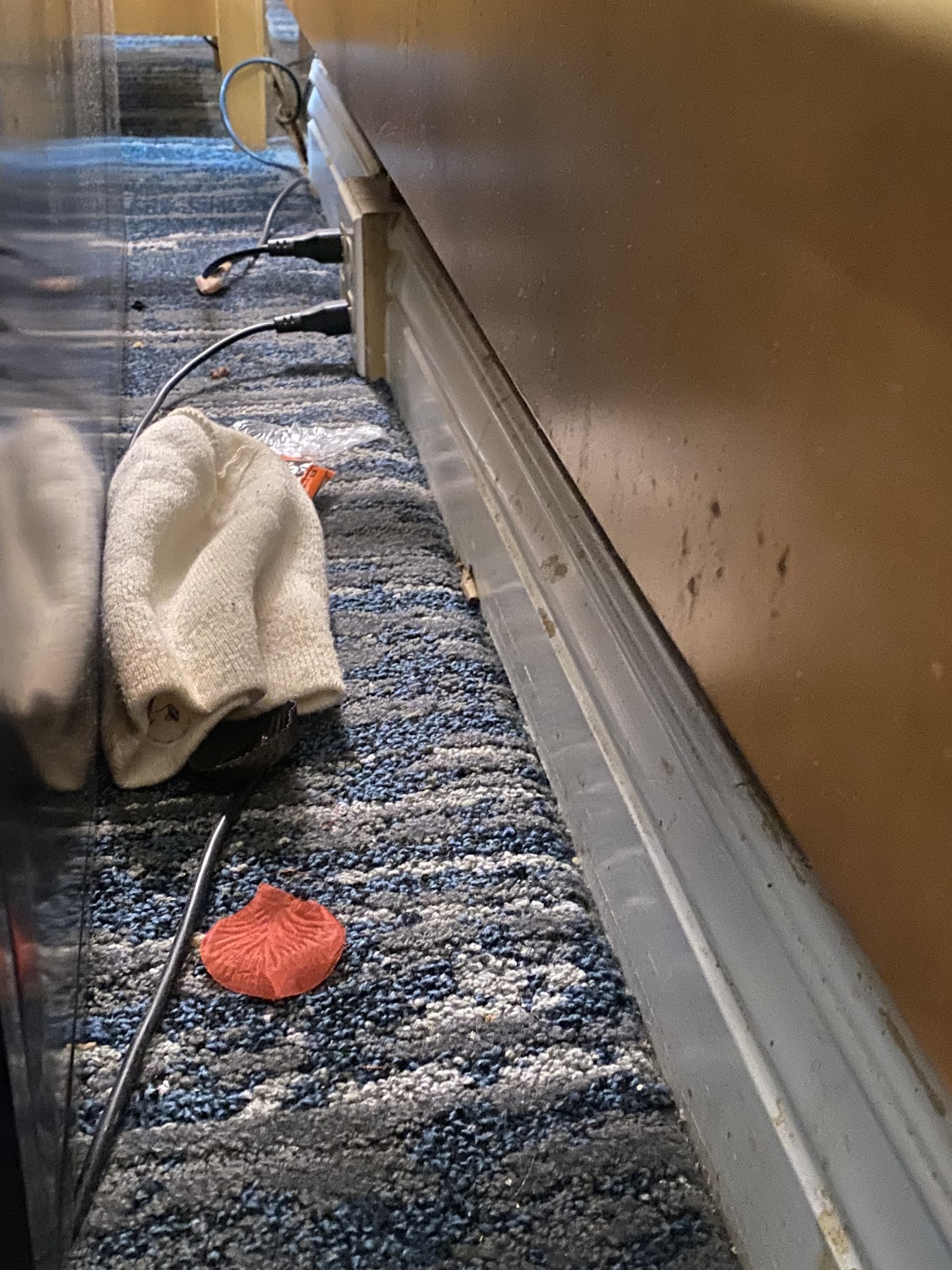 190$ for a 1 night stay for a room with a hot tub that once turned on blew out black mold. Then once we told the staff of the situation they called the manager's wife she then gave us a hard time trying to discount the room. The owner then got on the phone and was arrogant saying we should just leave. Honestly they aren't professional and offered to clean the tub while we were staying here, just guessing but to me the right way would be to add bleach and run the jets for a hour or so. This is not acceptable while guests are staying in the room and should be a discount or a new room offered maybe even a refund. Obviously the tub is not maintained properly and it goes further. The full mirrored closet doors are falling off that is a physical hazard, there's no smoke detector and the wires where it should be are taped up also the toilet has a bad dougnut and is leaking on the bathroom floor. In conclusion the room is unsafe and we have pictures plus narrated video that will be shown to better business...
