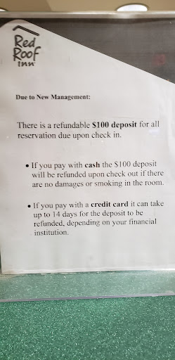 Read moreMy experience with this Red Roof was not pleasant at all. I made reservations for a Friday and Saturday. I've been to a few Red Roof's, and had decent experiences, that had rooms cheaper and nicer than their prices. The price of these rooms, are not what they're worth, especially with the problems that come with it. Along with that (not listed on their website), they charge an extra $100 deposit, that could take up to 14 business days to be refunded (if purchased with a card). The entire total came to, a little over $289. The desk clerks were not friendly, and were very slow at taking care of guests. During the first day, I decided to go for a swim. The inside door (leading to the pool) was broken, along w/ the pools exit/entrance gate. 2 kids, that were already inside the pool stated, they had to jump the fence, in order to get inside. On the second day of my stay, I'd come in from being out on the lake around 10:30 PM. I was unable to get into my room, due to the key not working. I had to go back to the desk, just to get them to reprogram my key. Once I got there, there was a couple being taken care of, and one other person waiting. I could tell that guy had been patiently waiting for a while, but was getting pretty tired. At that point, I had been waiting for almost 10 minutes, myself. I definitely, will not be back at the Red Roof Inn on 590 Bullsboro Drive in Newnan, Ga. UPDATE: Since my stay at this hotel (07/12/19-07/13/19), 1 week after, I noticed my $100 deposit had not went back to my card. I checked again on 08/01/19. I STILL have not received my $100. I called and spoke with the manager the next day. She stated they had not sent it through, but was doing so at the time I called. She then, tells me to give it a couple more days. No one, should have to call a company/place of business to remind them of THEIR money, that they owe to them. Nor, should they have to wait for nearly an entire month. Either, that place needs to be shut down, or get better...