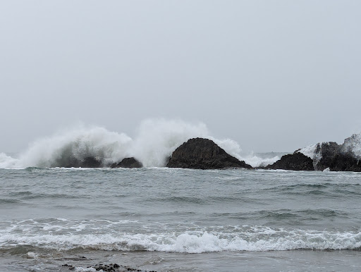 We didn't notice much road noise other than the occasional semi-truck that used their loud brakes. Trees and natural shrubs/bushes all around, along with wildlife. The walk to the beach is very easy (plus there are benches) and we found more tidepool creatures here than in other areas. Be sure to go down at low and high tides to see the difference.