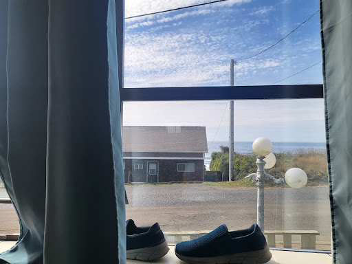 Despite its location, there is more or less a cliff and a wall of connected private property along the beach so it doesn't really have any direct beach access. You need to walk a few blocks to get down to access Nye Beach (a reasonably nice beach).