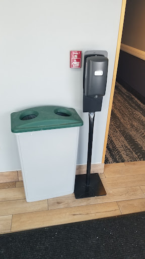 When using the second entrance, there were cigarette butts all by the door outside, dog pee, right by the door also. They might wanna make a designated dog area or explain to guests, where the dogs can go. When walkin in the second door, one is greeted with a garbage can and hand sanitizer. Nice option. Stairs to the left, for second floor and forward was the ice machine and luggage trollies. Just past them, to the right was the main hall to...