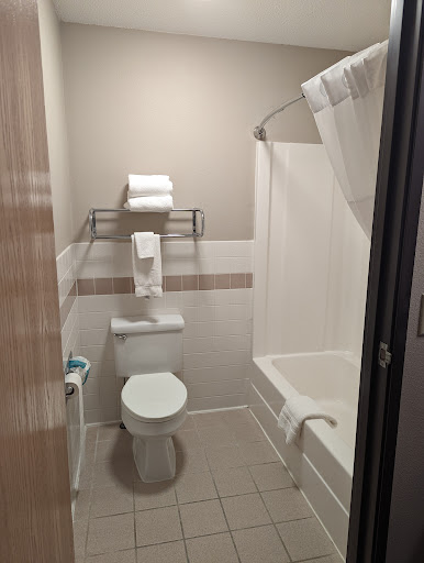 Read moreI looked up a lot of hotels in this area before choosing. This has the best reviews and pictures. Immediately to my surprise I felt I had been miss lead. When I walked up to the hotel there was a young lady smoking out front, I assumed she was a guest. I got to the front desk and there was a sign stating front desk step away and there’s be back shortly. In actually the lady out front was the front desk, once she finished her cigarette she came in to help me check in. The whole time I was checking in she kept sighing and rolling her eyes. I don’t think it was anything I did cause I never said anything, I was just answering her questions. When I got to my room (which was a pet room) the room smelled like animals which I expected, no problem.... but the bathroom floor had an overwhelming dog urine smell, the floor was wet and when I put the towel down it turned yellow. Absolutely disgusting! I couldn’t take a shower in there because the bathrooms smell was too overwhelming. I went so sit on my bed and there was a very large spider web going from air conditioner to wall. Later in the evening we decided to go for a swim, the sauna was closed and a horrible smell was coming from the room. On our way back to our room we sipped at the vending machine to grab a water and sprite, 6 our of the 8 options were sold out. Finally the Powerade was available, then I went to purchase a 2nd one , it took my money and gave me nothing. I went to desk to let her know and she rolled her eyes and said oh it’s probably out and slammed my money on the counter, I said thank you and got no response. (This was the 2nd front desk staff that obviously hates there job) We were in a room at the end of the hall right next to the security door. It did not lock, you did not need a key to open, odd science there was a sign on the outside that said this door is locked for your safety. When I checked out the next morning the woman at the desk was the first kind welcoming staff I had dealt with. She was pleasant and smiled also was dressed as if she worked at the front of a hotel. Sadly I will not return to this hotel, I will be looking for another place to stay when I go up there for my...