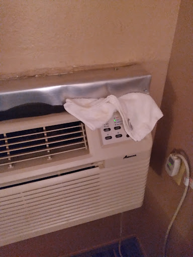 This place is an ABSOLUTE sh*thole. The rooms are terrible and extremely overcrowded (I'm a beanpole, I'm in No way fat or even average, very skinny). The rooms stink of mildew musty OLD. They have been repainted but that's it. My sink doesn't drain. The Kleenex box on the wall is rusting and is definitely original. The bathrooms aren't much larger than ones you'd find in Japan. The beds are TERRIBLY uncomfortable. You'd be more comfortable on the floor, I'm SURE. The TV doesn't swivel so it's difficult to even watch from its angle hiding in its gaudy media center. The AC units are OLD and LOUD. You can hear every footstep and door shut and even conversations. I can't mention anything about the breakfast since I did not attend, mostly in fear of running into a pool of Crackhead zombies that were roaming the hotel at the time of my check-in. I specifically requested to park my car where there would be security cameras (supposedly around back)(I saw no cameras) the parking lot and adjoining lots are pothole city and loose asphalt and rocks are everywhere. It surely hasn't been resurfaced in 20 years.