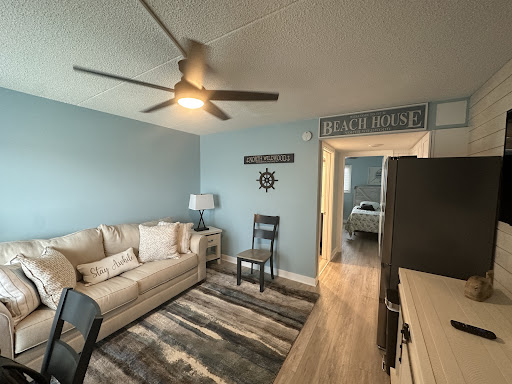 Read moreLove this location! The cleaning staff is mostly friendly. My room was not clean, microwave had food in it, surfaces were not wiped down. I don’t think it’s the standard, only a few of the cleaners were lazy and uninterested. There is a lady that goes around checking rooms so not sure what she is checking. I bring Lysol and paper towels so I cleaned it when we got there. They do clean the blankets!! Which so many do not. Pools need to be cleaned more and checked during the day. They claim to be a non smoking property, but have a smoking spot set up right next to the pool, kids inhaling smoke. Most people ignored the no smoking and smoked outside their rooms, and in front of the elevator. No one enforced it. They do enforce silly things, which is a little annoying. You get the idea that they really don’t want you to talk back. I was worried about bringing up the dirty room so I didn’t. Can get loud outside at night but you can’t hear anything in the room. There is an ice machine for minimal ice- takes quarters. Room is stocked for kitchen, couple pans, toaster, plates, coffee maker which was gross and we didn’t use. Standard efficiency does not sleep 6 Double beds and pull out. It was tight with 4 of us but we know this is the deal. I did smell bleach which we were very happy about. Location is great for the beach. Even side has no ocean view, odd side does but way more crowded over there. 2 grills on site, never had an issue getting one. Sitting area outside your room is tight and not all rooms have chairs. Most of the common outdoor spaces are crowded with people running out and saving them. 4-5th street beach is a surfer beach and closed off, 2nd street is on a corner and not a good beach. Russos market is walkable, best food on the island. Golf and ice cream also walkable, boards start at 14th so it is kinda a far walk but not bad if you like walking. All in all we would stay again. I think your experience really depends on the week you are there. We stayed in June before and it...