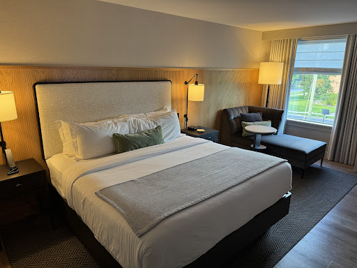 The renovation of the boutique Watershed hotel was completed in May 2024. It is conveniently located right off the Merritt Parkway, a short distance from numerous destinations between Stamford and Fairfield CT, including the location of our wedding events. All of the hotel common areas and the guest rooms were redesigned and updated this year, and the hotel is now absolutely beautiful. The very pleasant lobby lounge, which has comfortable furniture and overlooks the pretty Norwalk River, was a great venue for our guests to mingle throughout the weekend.