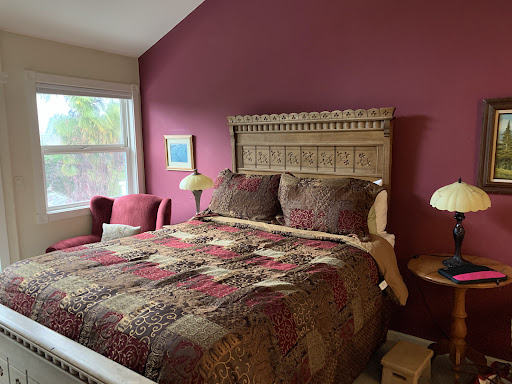 Read moreMy friend and I stayed in two of the upstairs rooms for two nights. This review is quite mixed: ||On the positive side the upstairs rooms have vaulted ceilings and lots of light (which I very much appreciate) and the beds are comfortable. The little decks in each room were charming with views of the courtyard and a glimpse of the hills. The host (who built this place) was very pleasant and welcoming. He lives on the property and is readily available. The large in-room tub was wonderful and hot water plentiful. The check in and check out hours are very reasonable. The kitchen downstairs is available with a microwave, and the dining room and common area is quite lovely as is the courtyard.space.||There are indeed small refrigerators and a toaster in each room and for continental breakfast— bagels with fixings, juice, and sweet rolls are provided. Unfortunately, there is no fresh fruit only plastic cups of “canned fruit” and all the provisions are bulk bought (probably frozen) rather than locally sourced (there are two marvelous bakeries in town.) there is complementary sparkling water as well (a nice touch.)||On the negative side:|The in-room Keurig needed to be descaled. There was paint wearing off in patches, one towel bar in my bathroom was torn out, leaving an unpatched hole. The industrial rug throughout the entire upstairs is stained, dirty, fraying, and disgusting.|The wing back chair in my room was so broken down that I found it impossible to sit in comfortably. One of the “double hung“ windows in my room needed repair and would not stay up. The screen on the slider was torn and frayed. The overhead fan in my friend’s room was noisy and vibrated so much it was scary (no way to turn it down from ‘high’.) Some of the furniture was very nice, “antique” cabinets and wardrobes but another dresser looked like it could have been picked up from the curb. ||It is close enough to town to walk there, but it would be dangerous because there’s no sidewalk or shoulder to walk on and the roads are fairly narrow and windy. ||Conclusion: it’s a nice place, but for the price it definitely needs to be updated with better chairs, some general repairs, and new flooring. Fresh fruit and real silverware for the continental breakfast would also help. And if the owner really wants to wow his guests, he could bring in scones from a...