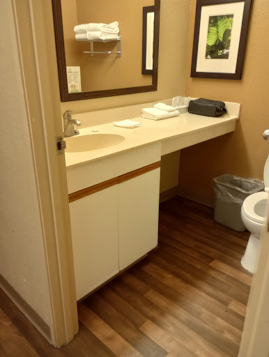 Empty shampoo bottles left in bath. Bathtub nasty and could use a scrub. Didn't have soap dish, hair dryer, ice bucket (don't recall seeing vending areas). We had to go get toilet paper from downstairs as there weren't extra. (And when we were doing that, we had to wait to speak with the attendant who was dealing with another very unsatisfied guest who had also apparently stayed at much nicer Extended Stays) (and btw, the attendant was very sweet and tried to accommodate her by putting her on the 3rd floor which was "her favorite and the nicest floor". We didn't hear the outcome but we definitely were on the same page as the other guest.)