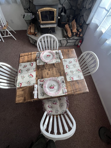 My first comment about the Apple Blossom is that Candy was very welcoming and helpful during my husband’s initial phone contact before we made our reservation and when I emailed her about the amenities at the Inn, she got back with me quickly with complete information. This is always a good sign. We like and appreciate when we can reach out to the owner of the property prior to our stay. She indicated during that conversation that if we got up early to go into the park that she would have breakfast items available to us if we couldn’t be there for her normal for breakfast that is served at 8:30 AM. |The bed and breakfast is tucked away a little off Highway 41 and at night is a little tricky to find until you establish a landmark. We took the scenic route, 49, to the Inn on our arrival day and unfortunately ran a little bit late due to treacherous mountain roads, but we gave Candy an hour notice that we would not be there by 7 PM and she simply asked that we call when we arrived. We were there by 7:15 and she was at the building and came out to greet us as soon as we arrived. We appreciated the personal touch she gave to her guests. She showed us around the Inn and handed us the keys to our room upstairs as well as showed us our private bathroom across the hall. I will say that I did not understand initially that the bathroom would be across the hall but having stayed at bed and breakfasts before where we had a shared bathroom, I was still happy to have our own space. She has nice bath robes in the closet of each room so if you need to travel back-and-forth it’s easy to slip on a robe and not be concerned if you bump into the other guests staying upstairs in the second bedroom. Both the bedroom and bathroom were clean when we arrived. I tend to be very particular about neatness and having items in my accommodations that are fairly new and updated but I would say the apple blossom has more of a 1980s feel but that is not necessarily a bad thing. Candy opened the Inn about 15 yrs ago and has run it pretty much on her own. One of the days during our stay there was a power outage that affected the entire county, all the way up to the fancy lodges in Yosemite. I believe her guests were all out and about so no one was inconvenienced, but she was very concerned about getting her rooms turned around for her new check-ins and the fact that guests would not have a/c or water if they returned before power was restored.|On those subjects, water pressure is a bit low and shower heads a bit low and the tub does not drain quickly as stated in other reviews but did not find it a big issue. The air was comfortable in the building but at night you would want to close and lock your bedroom door so there is the option of leaving a small window open with use of ceiling fan or use the room a/c but it was very loud. The one night I turned it on I literally could not get to sleep due to the noise, although my spouse was already asleep and it did not wake him. Newer, quieter units might be my suggestion or better ventilation into the rooms from house unit. |My biggest disappointment was I would like to have sat on the quiet balcony outside our upstair room but it was full of leaves, white chairs were dirty and had spider webs. My suggestion would be to keep up that space for guests who want to sip a glass of wine out there under the stars. Also I would have liked a more comfortable upholstered chair to sit in in the room as ours had a wooden swivel chair that seemed a bit unsafe as I tripped over the leg. But the room was clean and nice. Bed comfortable. |I will say that the first morning we came downstairs, Candy immediately asked if there was anything we needed. |Candy was very diligent to get breakfast started and finished on time and had it displayed on an easy serve-yourself table inside the kitchen. She had coffee going and juice options as well as tea and hot chocolate options. We had a broccoli and cheese quiche which she said she got from a local baker. On the other mornings we got freshly made pancakes and French toast along with a bowl of wonderful fresh fruit of which included blackberries that they pick there on the property. We were slightly disappointed not to get apples from her apple trees on the property but she explained the situation with deer getting to her apple trees. She has beehives also on the property and has been known to serve some of her honey but I did not see any while we were there and then reading prior reviews I see she used to include bacon or sausage with breakfast and we had no meat while we were there but I won’t say that that’s a necessity for me. She did have yogurt and granola out which was a somewhat healthier option although maybe a plain Greek yogurt would be a better option is not so much sugar for those of us that try to avoid it. After breakfast is served, she immediately cleans up the kitchen and leaves her guest in private but there’s always morning conversation in the kitchen with either Candy herself or the other guests. We made friends from both Texas and California while there and met some other guests that were staying from Florida like us. We were able to chat and find common interests and also get advice about what to do in the area or simply what other fun activities the other guess were doing during their stay. I did not speak with anyone who was in anyway unhappy about the accommodations and one of the couples had been there several times over the years as they have family in the area. Because the mornings are fairly comfortable this time of year, instead of serving people inside the living room area we had breakfast out on the deck near the hot tub.|We did see the hot tub, while on that subject and mention from the other couple that I believe they used it but it was kept covered and I do not recall candy offering use of the hot tub to us directly or any instruction on how to use it. |Many people traveling to the inn might be surprised to fin