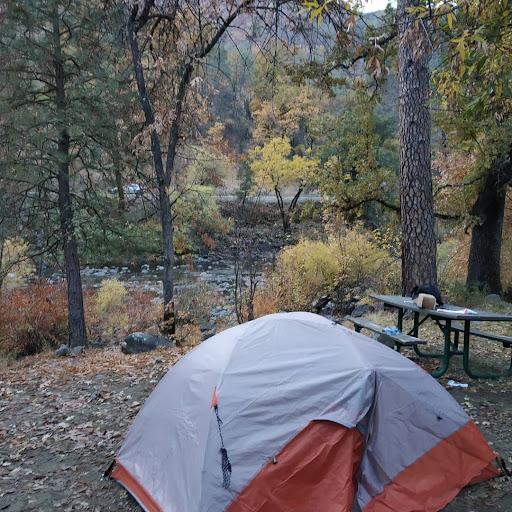 Located next to the Merced River. Campsites vary from large to small. Bathrooms are nearby and well maintained. I believe there's 5 spots. The first three are large to medium sized. Last two are small. The sandy beach on the river is about a quarter mile. It's best to drive if you're with very young kids or older adults. I mention the sandy beach down the river because the area of the river the campsite is on is very stony. Boulders and slippery rocks dominate this part of the river. Walking in the river is hazardous around this area. Best to go to the sandy beach. You'll thank me....