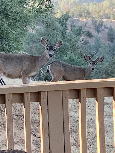 Read moreThere is no restaurant at this place, but they have a gas BBQ the guests can use. We picked up salads and stuff for the BBQ from Mariposa and started grilling when the sun was about to go behind the mountains.||We sat at their terrace and enjoyed the views. There we loads of hummingbirds around. Couple of black crows paid a visit. Then wild turkeys started gathering and clumsily flew to trees downhill to be safe from the predators overnight. We counted fifteen. As it was getting dark, grasshoppers stared to making a proper racket. ||While all this was happening in front of us we were enjoying our BBG dinner, which was very nice, but probably I could have eaten cardboard and still be happy.||It was now dark and we enjoyed wine after dinner. Suddenly something large moved just outside the terrace. Five deers casually walked past just few meters away from us, ate some grass for a few minutes, stared at us occasionally, and then carried on.||I’m not sure how one can have a better dinner!||View from the terrace in...