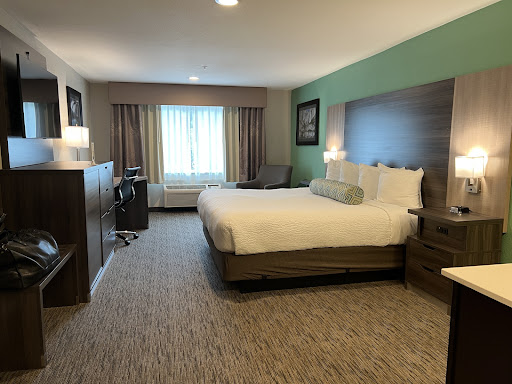 Read moreWe stopped here for one night when we visited Yosemite National Park, it's about 1 hour and 30 minutes to drive to Yosemite Valley, which is very close and convenient. We arrived late in the night, there were 2 persons at check-in, so everything went smoothly. Big parking lot, when we arrived was full, but I managed to find a spot. Room was big, with 2 queen beds, very comfortable and everything was clean inside and well maintained. They have a lot of storage spaces in the room, and I really like the idea of a make-up table next to the sink, as you can see in the pictures. Bathroom was clean and spacious, with everything you need to enjoy a nice shower after a day of hiking. It was also a bar area where you can find coffee machine and tea and a separated sink to use it. Breakfast was good, you can grab something before you go, but they can improve it a lot. They offer scrambled eggs and sausages, cereals, bread and bagels, muffins, yogurt, juices and coffee. I really didn't like how they put the milk, it was 3 bottles, a gallon each in a fridge ( see pictures ). I don't know if every day is the same thing because we stay only 1 night. Also I don't like the area for the tables at the breakfast, you have a few tables to sit, and then you have a bar with high chair to sit surrounding the table, but when you try to sit there, you feel like you sit in the head of the people from the table. Overall is a nice place to stay closed to Yosemite, at a good price, remember you have to drive to Yosemite Valley, but is a nice drive. As I say they can improve some things at the breakfast. Clean and big rooms, nice people at...