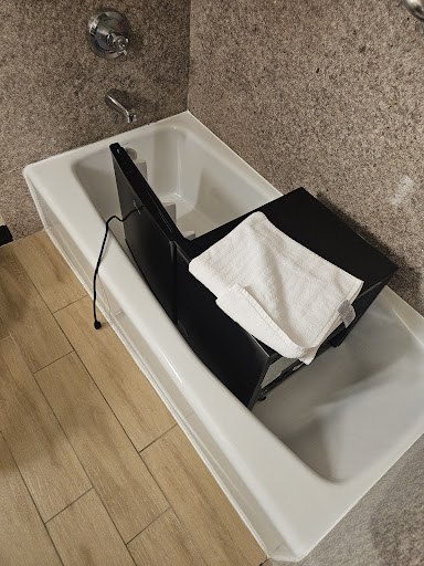 Read moreWe booked the “presidential suite”, we arrived around 5pm, check in was easy, as soon as we walk into our room there was cleaning equipment straight in. the middle of the floor, it was opened up as if it was middle of use and there was cleaning solution left open bottle, the room had a very off putting smell not sure if it was because of the chemicals left out or what. After lugging equipment and solution to the hallway, we checked the mini fridge which was not working and had leaked water from being thawed, the carpet was still damp from either the fridge or the carpet cleaner. We went to wash our hair before going out and we did not realize we were completely out of shampoo, the bottle didn’t have anything in it so we had to go down again after asking about the fridge and equipment left behind to ask for shampoo and they just handed us little bottles instead of replacing the one on the wall. the bathroom was not well cleaned, the toilet had stuff left over on it, a hair left on the seat, there was a hair dangling from the hair blow dryer, then we go to put away clothing in the drawers where there was more hair. The next morning we woke up to be shocked that the sheets had slipped revealing a large brown stain on the mattress, i was not even searching for this it was just so obvious. All of this combined just felt like careless cleaning job they didn’t even finish cleaning, left stuff behind. The room was very very noisy as it’s next to the highway, the hot tub takes so long to fill, the tvs are completely outdated, we could not use any applications, we could not airplay youtube or anything, cannot see the tv from hot tub, so we wanted to listen to music, they don’t pay for the music channels, the channels kept going out saying “weather related” and the weather was perfect, we even went for a walk. we literally were watching a movie and it happened and by the time the tv came back on the movie was finished… we wanted to get a water and their “market” for a smart water was $7 which, take it as you will but for that condition of a hotel and lack of care, cmon now. The breakfast was pretty garage unless you want a muffin or waffle: the eggs were pretty bland, the sausage felt like i was biting into a sponge, the juices were okay, and i went down straight at 6:35 so i can’t say i even waited to long to get...