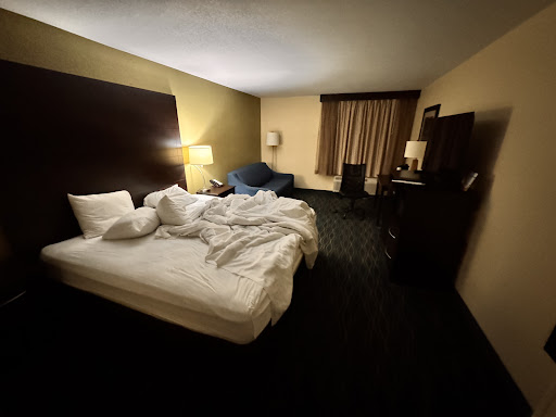 Read moreIt should be possible to give zero stars. We checked into two rooms for one night on 8/15 on our way to Cincinnati. One of them smelled like pee and within 5 minutes of sitting on a bed, 4 ants crawled on me. I found different rooms an hour down the road in Bloomington at the Doubletree (STAY THERE!!). Spoke with the manager, who resisted letting us check out, but he eventually agreed to let us go without billing for the rooms.