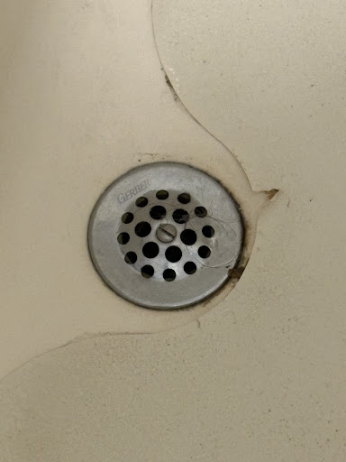 Below are some pictures of their old and abandoned ( and dirty)larger ice machine which was replaced with a smaller one which was often empty. The bathroom was another major problem: the bathtub had an old mat that was obviously removed and the glue remained. The toilet seat was ill fitted and the door didn't close completely(often embarrassing). Even worse everyday motel guests had to remove their own trash and put it in a large overfilled trash can at the entrance to the front office. On more than one occasion parking was limited if you came back after 9pm. There's something else goin on here.