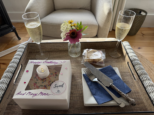 Read moreLaurence and Glen have thought of everything, every detail to make you feel welcome and well cared for! From the moment we arrived for a romantic overnight, we were greeted with a bubbly glass of champagne which we enjoyed on the airy front porch with their adorable little dog Bentley. The Trellis House is gorgeous with the surrounding gardens teeming with luscious hydrangeas and thoughtfully placed seating options- very secret garden! The room was light and clean and made you feel right at home, complete with freshly baked cookies and bottles of water on each nightstand. The feeling of being so welcome at a hotel or Airbnb is rare. We loved the location, within walking distance to Marginal Way and lots of restaurants. The breakfast the next morning was so delicious and not uncomfortable at all! I pictured all the guests awkwardly sitting at one large table making small talk - not at this Bed and Breakfast. Glen welcomed us to bottomless delicious coffee as soon as we arrived and sat us at a table for two by an open window, and Laurence delivered two delicious plates - a golden brown blueberry bread and an incredible entrée of eggs and the crispiest potatoes I've ever had the pleasure of enjoying. We cannot say enough about how amazing the customer care was. Especially nowadays when it feels so rare to be treated so well whether you're doing dinner out or an overnight somewhere. They nailed it! Thank you Glen, Laurence, Bentley, and the rest of the Trellis House staff! We will be back....
