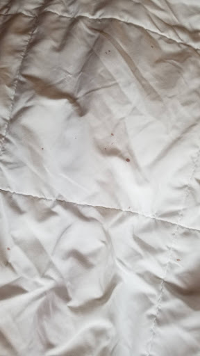 That first night, as we unfurled our duvets to prepare to sleep, I noticed blood splatter on not one, but both duvets! It was after the front desk closed, so we couldn't get new ones without it being a big hassle. So we slept under thin sheets that, at that point, we were unsure were clean. The very next morning, I walked the duvets to the front desk where the attendant agreed that it was disgusting. She asked housekeeping to get us new ones, which they did. I waited for them to make it right by offering us a discount on our room. NOTHING.