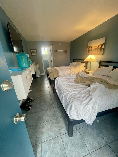 The room my fiancée and I were staying in was a king bedroom on the top floor. The room was extremely clean for a motel, I honestly expected it to be worse since I had never been to this location before so I was happily surprised to walk into a spotless room. I’ve been in hotels that weren’t as clean as this! The owner (only spoke with the woman, not sure what her name is unfortunately) was extremely pleasant when we arrived! She was upbeat and friendly, and it was a great way to start off our 2 night stay. She was also very pleasant at check out as well, hoping we would come back in the future. The location of this motel is perfect — less than 3 min walk to the beach, which is much less busy than down near the center. The walk to the center is maybe about 5 minutes as well. The motel has a pool which looked super clean (did not use), as well as a back patio with grills and a microwave and probably other things as well (did not use). Also had an outdoor bathroom which is nice! Overall, this was a great stay and would 100% book here again! My only complaints would be: the tv only had like 5 stations which I did not see in the listing, which I did book directly from the website…this usually wouldn’t be a big deal, but we stayed during a rain storm and was stuck in the room with not much to do. Not the end of the world though, next time would bring an iPad to connect to the WiFi that worked wonderfully. The other complaint would be that the bed and pillows were not that comfortable. The pillows were hard as a rock and the bed formed to my body in such a weird way, so it was very hard to get comfortable. My fiancée that can sleep pretty much anywhere also had issues getting comfortable too. These are 2 pretty minor issues that really can be overlooked by everything else, which is why I gave this a 4/5 stars. Would recommend this...