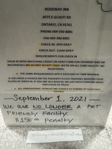 A person can deal with anything when you have great people around you who treat you well & know if SOMETHING GOES DOWN, THOSE PEOPLE WILL HAVE THEIR BACK! THIS is why I continue to rent from Rodeway Inn Ontario.Mr. Pintu (Manager) hardworking BRILLIANT MAN! Mr. Pintu--SPEAKS AT LEAST 3 languages--& He’s constantly working around the clock helping the staff, renters & his family--GIVE THIS MAN MORE MONEY! HE IS WORTH IT!) Thank you so much for including me like family here! (Possible) Negatives: They’re slowly refurbishing the rooms (not everything is the best condition) NO BREAKFAST--IT IS ⅓ THE PRICE OF THOSE “Breakfast included” HOTELS! VERY Noisy-- The Rodeway Inn is right next to the TA (Truck stop) and there’s a train track DIRECTLY across and above--there’s a lot of noise from that-- I sleep VERY well here! (I owned a home right next to train track in PA before California) Positives --It is VERY clean here & if there IS a problem---THEY FIX IT RIGHT AWAY! -laundry, ice and snack machines on site. Each room has Microwave, great fridge! Desk, 2 chairs, shower with bathtub, nice big counter, sink, dresser with counter on top for phone-- roomy, 3 big drawers--2 nightstands on each side of my King bed --non smoking room. THERE ARE MANY outlets--charge your laptop, phones, camera and bunch of other stuff all at once! Several lights make filming, writing, filming super easy for your eyes.. Control your own heat & ac--WORKS WELL, pool & a hot tub. Most of the guests seem to respect quiet hours (& are usually quiet during the day too) Walkability- I can walk to any of the stores I need to go to in less than 20 mins. There are buses if you need to go out of the little town. Less than a mile to the Ontario airport & Toyota Arena -5 min walk to Farmer Boys. Amazon lockers are at the TA right next door Shopping--Food & Groceries/ Business- INSANE prices at the BOTH TA (2 right across from each other) Walk around the corner to Farmer Boys) get groceries--save more money making your own!)15 min walk to Sam’s club, Target, Grocery Outlet, Big Lots, Dollar Tree, 76 & AM/PM, Staples, UPS--LOVE both! Superstar Staff: Maria-(cleaning) She started mocking me like she’s me & was dancing. I said “Baila conmigo” & now she dances with me every time I say it! Ronnie sweetheart--she works overnight. Ober (Fastest & smartest, most caring maintenance guy!) & his wife, Francis (cleaning) work here! Sisters Griselda & Esmerelda---sweethearts! BEAUTIFUL to see such hard working ladies being so good to each other!Angeles- BEST EVER! Angeles knows EXACTLY what I want, (towels, cleaning, not to be disturbed etc.) SINCERE, hardworking, God-fearing woman! Angeles helps me feel “safe” (emotionally) with her patience & kindness-My Spanish Skills Skyrocketed! I want to learn her language better so I can communicate with her & show her how much I care! Waldeck--Sweet man in medical school--came here from Haiti. Leslie--EXCELLENTE! She told me “Saludas, dinero y amor,” most important! God wants that for all of us! Caring THOROUGH and THOUGHTFUL lady-with her cleaning & convo!! SHE REMEMBERS what I need, but offers other things she never assumes. She asks questions about my services and my life. BEST (front staff) Juhi--FANTASTIC communicator--with smiles & patience (I also have a hearing problem) Juhi shares herself--her thoughts of a higher way of thinking & better life for us all. GENIUS woman-GIVE HER A RAISE! I feel safer emotionally because of these people--& physically. There’s 24 hr surveillance, staff & security--and the Ontario Police patrol here all day & night Though this is the MOST AFFORDABLE hotel in California, I feel the value HIGHLY EXCEEDS my money because these PEOPLE ARE PRICELESS! A person can deal with anything when you have great people around you who treat you well & know if something goes down, those people will have their back! God bless you, Rodeway Inn! YOU ARE WORTH IT! Liberty V Justice CEO I’m...