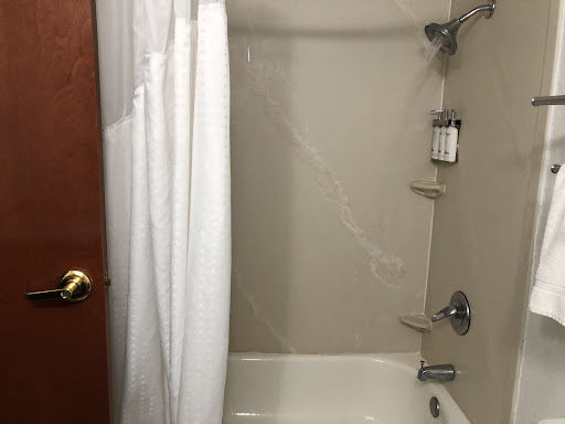 Read moreAfter two nights of no power due to our most recent hurricane, I searched locally to see if there was any reasonably-priced hotel availability. This Holiday Inn is about a 40-minute drive, so I grabbed a room for Saturday night. ||As a very experienced hotel denizen, I knew enough to request a quiet room on a high floor, away from elevator noise and traffic noise. Fortunately we ended up on the 5th floor, where there wasn't much guest traffic, because the room wasn't noise-proof. We did hear occasional conversation in the hall when guests passed our door. Fortunately, none were late night partiers, so sleep wasn't disturbed.||The hotel property is lovely. The building appears to have been recently renovated throughout, and well-planned to include thoughtful amenities like night lights and exhaust fans in the bathroom (the lack thereof are my pet peeves in hotels). Our king room was large and comfortably furnished with necessities like blackout blinds, Keurig coffee maker, microwave and mini-refridge. The chaise lounge was a nice touch, and I appreciated the exceptionally comfortable desk chair.||I also appreciated the full-size tub . . . soaking in a hot bath was divine after not having that option at home for days. This hotel goes above and beyond most brands in bathroom amenities. In addition to body wash, shampoo and conditioner, guests are provided mouthwash, a shower cap, and makeup remover towelettes. If you forget your toothbrush or toothpaste, shaver, etc, you can get a complimentary one at the front desk. ||The location is perfect, literally 30 seconds off the interstate. And you can walk to Perkins Pancake House if you're into franchise cuisine. Many other restaurants are within a few minutes driving distance.||Hotel breakfast is served from 6:30-9:30. We didn't partake because complimentary breakfasts don't typically offer organic options.||Holiday Inn Express was a welcome refuge from the storm. We could have stayed indefinitely if power hadn't been restored at home. Add noise insulation under the door and a recycle bin, and the guest experience here is...