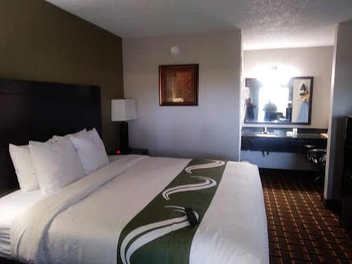 Read moreUnfortunately, my boyfriend wanted to save a couple of bucks. So, I ended up at this Choice Hotel. I would have gladly paid the extra $20, to stay at another, higher rated establishment! Anyway, they shouldn't be charging so much for this one!? The place is outdated, but the room appeared clean and their pool looked refreshing. Our room door was difficult to open, like we had to push it forcibly, each time we'd reenter, the usual loud, old A/C, the bathroom is so small that you can't even close the door without getting behind it first, and the King sized bed was so hard and uncomfortable!! Both of us woke up with severely aching backs! (It took all day until we felt better.) The free food was a normal Continental Breakfast with a warm tasteless waffle, if you prefer. I enjoyed eating toast with jam and the Frosted Flakes took me back to my childhood. FYI: Although, they weren't directly responsible for the incident, their response was negligent. A transformer blew out and we lost power completely, on our last morning. The noise awoke us around 6 a.m., it stayed off until we checked out early, at 9 a.m., but since they don't have the required and needed back-up generators to handle the entire motel! We were unable to see in the bathroom, so freshening up was useless. We got dressed in the dark, since opening the curtains wasn't an option, not to mention, no tv or working air conditioner. Sadly, I do not recommend staying at this place. (Remember, looks...