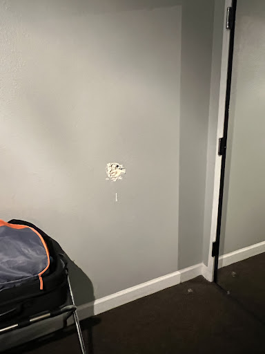 Also to the owner, you may want to paint the entire highlighter wall. My daughter uses a feeding pump and I needed to plug it in for her 10 hour overnight feed. I looked for a plug outlet that would be closest to the AC unit as she gets very hot at night and I wanted her to sleep on that side of the bed. Due to the size of the plug for her feeding pump, I couldnāt use the same outlet as the AC. I discovered looking under the night table on that side that it wasnāt moved and painted - so there is a big white area in the triangle part where the legs cross on the night table. Its sloppy and if youāre trying to come across as an more upscale boutique type hotel, I suggest not cutting corners.