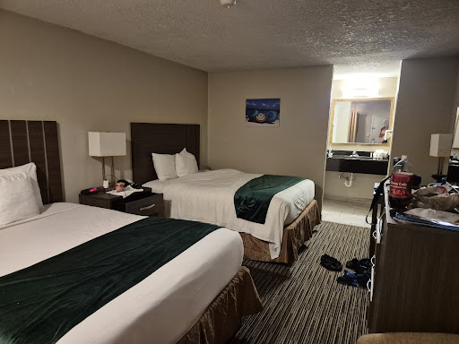 Read moreFor the price we paid it's pretty much as expected. Definitely not luxurious by any means but it was somewhere close to universal studios so that was a plus. Most of the staff unfortunately only spoke Spanish. The "free wifi" NEVER worked in our room even when maintenance supposedly came to try and look into the problem only to say they will check something and be back... Que them never coming back. So that was very unfortunate. It is definitely pretty rundown and could use some renovations but overall it still was somewhere to stay. The breakfast was actually pretty good though. They had an area with cereal (froot loops and some bran cereal at the time) mini muffins of various types, egg patties, sausage patties, hard boiled eggs, bread to make toast, jams for the toast, some packages of oatmeal, orange juice, apple juice, coffee, milk, water microwave and toasters available. Unfortunately while it was close to universal studios it also was by the hookah bar and lounge which gets EXTREMELY loud on weekends blasting music all night. The parking ramp across the street has turned into some peoples personal race track so be prepared to listen to cars squealing and revving engines constantly. We were told we had to schedule cleaning of the room only to discover the did it whenever they felt like without having to schedule so wasn't too comfortable with it as we never knew when they would be in the room so there were times we forgot to lock up expensive items however they were completely fine it's just a habit to worry. We also felt like the door never did truly close all the way though it was able to lock it was still a little concerning. Managed to see a mini lizard squeeze its way into the ground level hotel room when passing by so that was fun though the hotel doesn't have much control over wild animals! It was decently close by to food options. Overall I doubt I would stay again unless priced right. It worked for what we needed and was overall clean from what we noticed.