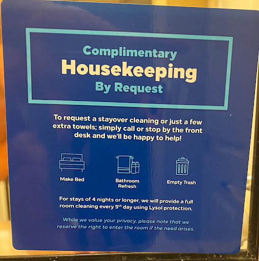 Rooms: We couldn't get rooms on the same floor for our stay. Fine. The room could have been cleaner but it was workable. We had to ask for towels multiple times. For my room, I asked initially the first morning and the lady said she would send some to the room. Never happened. I went back to the desk later that night and asked a 2nd lady. She gave them to us on the spot. My nephew (staying in a different room) asked for towels on a different day from the first lady and she was not pleasant with him so my dad stepped in. Their room never got service on day 2 (they clean every 2 days đ). My dad had to ask multiple times for the staff to clean the room. Also the trash cans were small considering the lack of service.