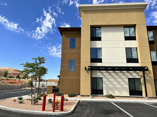 We visited this hotel in 2022 and 2023. It is new, no smell in the rooms and corridors, clean. The rooms are quite big and nice, with very comfortable and high mattresses. They have a fridge and a microwave. They have mini DOVE toiletries, which is great. There is no problem with water pressure or plumbing like the hotels right in Page. There is a large parking lot.
