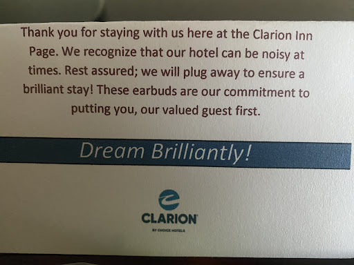 Read moreAnyone looking for clean, affordable lodging during a visit to Page, Arizona should look no further than the Clarion Inn. I mean, if you're in Page, Arizona, you're likely here to see the sites and not to lounge around in a luxury hotel all day but even if you did want to lounge around for a day during your stay, this place is still a nice, affordable option!