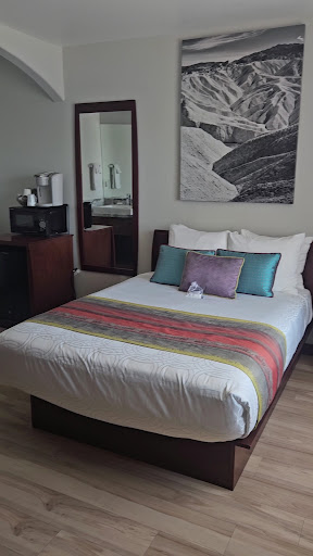 Not quite sure how to review this place. Only stayed one night as a jumping off point for visit to Death Valley. This is an excellent location for entering the park from the south. Shoshone is basically a mining ghost town. The office staff are not there overnight and live 20 miles away in Pahrump as does the restaurant staff. The lock on our room's door was barely operable and there wasn't a deadbolt lock. No Wi-Fi or cell phone service. Only a pay phone (yes, an actual payphone) across the street. The US Post Office had a note indicating it was closed due to vandalism. All this left us feeling a bit insecure. Didn't do the pool as we didn't really want to swim in 80+ degree water when it was over 90 degrees outside when we were there. They admitted that they had turned on the air conditioner right before we got there (probably to save money) and the room never cooled down. We roasted in that west-facing metal-roofed hot house all evening and well into the night because of that - we felt that was irresponsible on their part during an excessive heat warning. Also, no ice machine on the premises - had to ask them for a zip-lock bag of ice at check-in or buy a bag at the store next door. Saw what may have been a roach in the bathroom in the morning. The waitress at the restaurant/bar across the street was very nice but the beer was luke warm. We didn't eat there as we had leftovers from lunch with us. The store was basically a typical stop-and-rob. We were there right as the CA Covid restrictions were being lifted, but it sure felt as though this place had seen its prime some time ago. Maybe it's busier when the weather is cooler. I guess it was an okay place to stay, but know what you're...