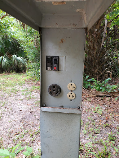 A hidden gem. This was our first visit to Faver-Dykes and we spent 3 glorious days camping here. It's right off I95 (literally), so when we first saw the road immediately after exiting the highway, all we could think was "we're going to hear highway noise/ambient light all night!" We couldnt have been more wrong! The long dirt road winding to Faver-Dykes is like going back in time, nestled in a canopy of Oaks and magnolias. There is no cell reception, so you feel cut off from the real world--a beautiful disconnect from technology! The camping is at the very end of the dirt road, right after the boat launch. It's a small park, less than 30 sites, but each is perfectly leveled, raked clean with a fire ring, water and electric hookups. The bathhouse is exceptionally nice: looks to be brand new, with showers and toilets. The building itself is well lit with motion sensor lights (so at night the park is pitch black!) and centrally located for all campsites. Near the bathhouse, exiting the campground is the dump station.