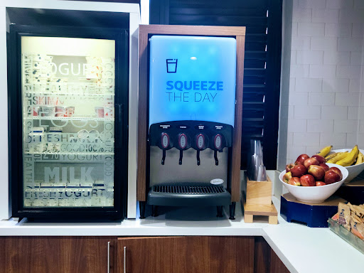 The included breakfast was far above average, for included breakfasts. Very nice, helpful service staff. Great variety too, including two kinds of eggs, bacon, nice fruit assortment, yogurt, and numerous other selections such as make-your-own pancakes. But the machine was entirely too technical for me, but consider this: I have trouble with a can opener. On my second morning, checkout morning, I had to leave prior to when breakfast was served. When I whined and sniveled about that, the lady at the desk made sure I got a few basics before I left, which was a wonderful gesture she didn't have to do. But I dunno; maybe it was just to get rid of me; I can be a real pain. One thing's for sure: I wake up starved, and not having ever missed a meal in my life, I didn't wanna break my record.