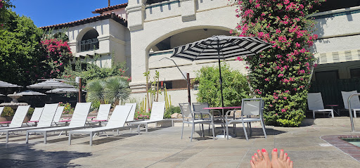 The pool - it is important to note, as we did when we checked in and is clearly posted in numerous places; "NO outside food or beverages are allowed in the pool and pool bar area", which should be understandable. The pool area is quite large and easily accommodates the 20-30 loungers that are placed around the deck. Furthermore, there are many patio tables with chairs and umbrellas. The pool is only 4' - 5' deep and is perfect for enjoying a beautiful day in Palm Springs. The pool is exquisitely maintained and a sense of pride is quite evident wherever you look within this hotel and its grounds.