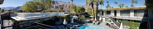 We had a lovely balcony suite upstairs! The room was very clean and equipped with TV, mini fridge, and automatic blinds. The suite is beautifully designed with that quintessential Palm Springs mid-century modern vibe. I prefer the aesthetics at Descanso over Santiago. The room decor really sets a wonderful tone for your entire stay. The cool greens and blues are very calming. There is an airiness and serenity to the room and whole resort. Lush green foliage envelopes the complex and makes you feel like you’ve escaped to a beautiful secret garden. The views of the San Jacinto mountains are breathtaking. Watching a crescent moon disappear over them in the evening was inspiring.