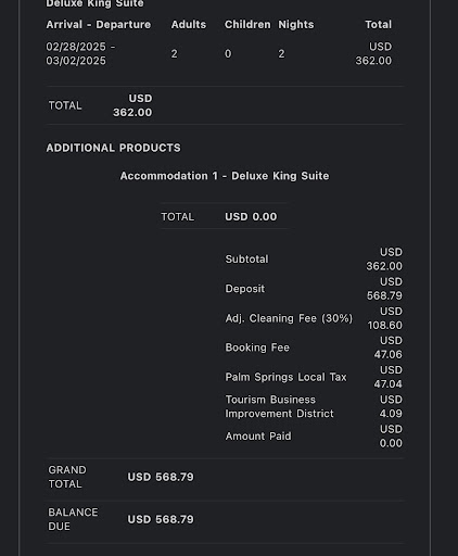 Read moreDO NOT STAY HERE. The Spirit of Sofia is nothing like its listing—it’s a total scam with absurd fees, neglected amenities, and no on-site service. You’re paying absorbent fees for a run-down, grungy motel-like stay.||Hidden Fees & Price Gouging:|Base rate: $362 – fair enough, until they start piling on the nonsense.||Cleaning fee: $108.60 – yet the place is FILTHY with zero turn-down service.||Booking fee: $47.06 – an unnecessary charge with no justification after booking online. There is not even an attendant on site??||Palm Springs taxes & fees: Another $50+ tacked on.||The deposit for 2 nights was higher than the booking itself!!||No Service, No Standards:|No on-site attendant. It’s completely self-check-in, so if something goes wrong, good luck.||Filthy, neglected amenities. The steam room had an intense musty odor that was absolutely suffocating, and the hot tubs were dirty and clearly not maintained—honestly unusable.||The entire property is run-down. Worn-out vibes and grungy decor, and a feeling that screams “no one cares.”||For the fees they charge, this place should be pristine. Instead, it’s an overpriced dump that relies on misleading photos and excessive fees. Avoid at all costs. There are far better places in Palm Springs—do NOT waste...