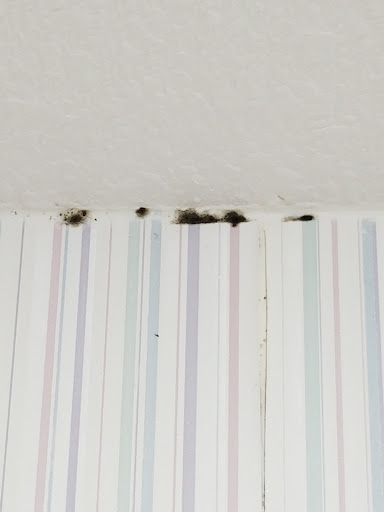 C) Light / fan fixture in bathroom missing a surround piece...so I could see into the area, see the electrical cables, and steam is getting up there and collectingdust and condensing. Potential safety hazard.