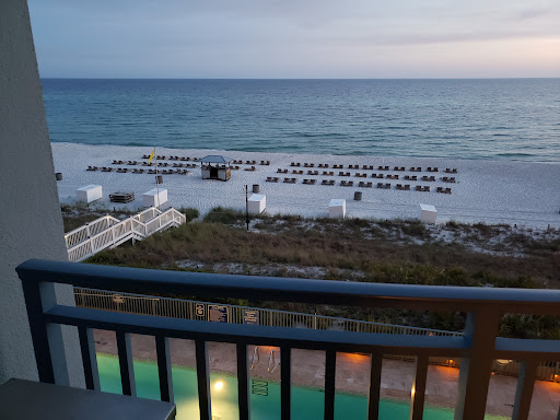 First off, its at least a mile to the Pier. Maybe more. Too far for most people to walk to eat. There is a Mc Donalds close. Winn Dixie is about 4 city blocks away. Ice cream would not make it back if you walked. We are currently staying in a one bedroom on the 11 th floor. The bedroom faces the street which has been noisy every night all night till 5:30 in the morning.. Finally downloaded a white noise app to muffle the loud people coming and going through the garage across the street and in the open hallways on each floor here. Something about how its built amplifies sound. Our unit had floors and bedding that had not been cleaned. We asked after checking in for house keeping to come since the sand was pretty bad. I washed the sheets myself. Two days later housekeeping showed up and said the owner was negligent and needed to buy a broom. Yep. We had no broom or working vacuum. We booked through the resort. Finally on day three , I pitched a tad of a dido, threatened to leave to a gal at the desk and a gal swept three hours later... Note - She only swept where the desk said was sandy. She had enough just from hitting the high spots to fill a dust pan. She said we didnt tell the front desk that sand was everywhere. She was amazed at the dirty floors but that didnt make her clean them. Oh... did I mention there was sand in the smelly sheets also. What a nice bonus! I broke down and sorta fixed the vacuum myself. It didnt suction perfectly but I cleaned it out well enough for it to gather around a cup of sand . * Note that we had not been to the beach yet or and tracked any inside.. just the two of us leaving our shoes by the door. The front desk person arrived with a broom today for me. I swept up about a eighth cup of sand in the bedroom and gave up. I will sweep the rest tomorrow. So I get the pleasure of sweeping and washing the ratty sheets for the low low price of $300 a night. Golly gee! Thanks! We won’t be back. Today we bought ear plugs so we can sleep. Happy vacation! Nice view from the balcony though. Wouldnt reccomend units whose bedrooms are below the 12th floor . Too noisy at night. The little poolside bar had reasonable burgers and drinks. Thats a bonus. I didnt find a Starbucks here. Maybe they serve Starbucks brand coffee at the bar? Beach chairs were included in the price but you actually pay for them. People were in our assigned chairs every day and refused to leave. I think they were not at the resort. One woman said that her family had rented chairs also but the beach guy hadnt set up her umbrella so it’s every man for himself. The beach guy running the chairs said that. Not exactly the kind of crowd we expected when random people from the beach use the resort. We didn’t feel easy leaving anything in our chairs and taking a swim. Someone stole our sunscreens when we went for a walk. Hubs accidentally packed sunscreen with purple glitter that from our dance daughter’s room. They made it for outdoor performances. We saw the purple glitter on a drunk guy next to us but NOOOO he didn’t have our sunscreen… The manager saw it and laughed. So we let everyone know that if anyone found sunscreen with purple glitter, it is ours. The whole pool knew the guy stole it.