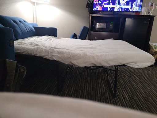 Read moreI’m literally only giving this hotel 3 stars and not 1, because of Ricky at the front desk. I give him 5 stars. The hotel is not the worst hotel in the world, but for the price, I would definitely go anywhere else. The lobby is very pretty downstairs, but after walking around and visiting the room,you can tell that that’s where all the money goes, just into making the lobby look nice. The bedrooms are in serious need of an upgrade. The beds were so uncomfortable, I went down and cancelled the next 2 of my 3 night stay, as soon as I sat on it. Not to mention the terrible back pain I woke up with. I had a 2 queen bed “suite” that is suppose to sleep 5+ with only 4 pillows that were about the size of couch cushions. The room was clean, I will give them that. But it so badly needs new carpet/bedding/everything, that it looked dingy. The shutters were nice, but only side stood closed so we had to deal with that Vegas sun bright and early since there were no curtains. The bathroom was very small and the floors desperately need a deep cleaning. You can hear airplanes taking off, which is to be expected, I did not feel like I noticed the sound enough for it to be annoying, so that was nice. The parking is open to the street and there are homeless people that sleep in the back, so I would try to park my car in the front. The guests staying here right now were also a reason for leaving early. I’m aware that the hotel has no control over certain things, but there were people with their children running around in towels, not fully dressed, letting their infants run around barefoot, and even guests themselves not properly dressed/half naked. Just absolute trash staying at these hotels right now. Go somewhere else. But shoutout to Ricky! He was a joy to work with and he made the experience a lot better as much...