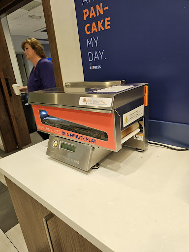 Breakfast is served on the ground floor, where the tables are conveniently equipped with USB ports and power outlets so you can charge your phone while you eat. You can choose to sit indoors or in a pleasant outdoor area. The walk to the Strip takes about 10 minutes, and the nearest supermarket (Vons) is also around a 10-minute walk away and stays open until 10 PM.