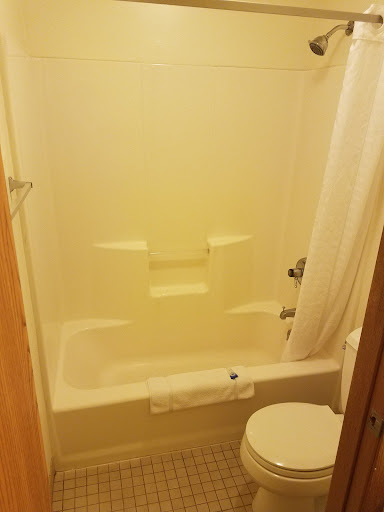 Read moreThis place is easily spotted from the road and is located near a very nice family resturaunt, two super markets, gas station and a McDonalds. The rooms and building are relatively clean and the rooms have your basic needs with a personal coffee maker and mini fridge. The continental breakfast in the main lobby area consists of two differnt cereal choices, make your own waffle station, coffee, muffins and other carbs but no sign of any proteins besides the milk they provide for the cereal, cream cheese for bagels and butter for toast. The service was good, they turned down my room very nicley, quickly and did it without interrupting anyone and the staff members were welcoming and nice. Bring your own handwash, body soap and shampoo, their products will dry you to the point of flaking. The things that take this place from an all around nice roadside 5-star place is the experience while trying to sleep and the obvious half hearted fixes/paint jobs around the building. The bed my girlfriend and I slept in was forcing us both to the center and sandwitching us in an uncomfortable sweaty mass. The wall mounted heater was either delivering way too much heat or not enough at all so throughout the night you would go from sweating to freezing and regardless of the delivery temp the air was always very dry causing nose irritation, sinus backups and sore throats for everyone...