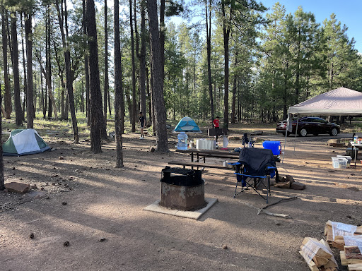 Read morePeaceful and clean campground near woods canyon lake. You can walk to the lake if you’re camping near the entry however, the campground is huge so if you’re deep in it, walking will take over 30-45 mins. We stayed at site 107 which backs to the rim so no neighbors behind which is nice but the outhouse is directly across the street which we smelled throughout the day depending on wind direction. I recommend a site away from the outhouses. We went monday thru wednesday so it was mostly empty. Later part of the week thru the weekend will be packed. I do not recommend. Sites are clean and all seem to have picnic tables, grill, and fire pits. It does get windy so place your cooking area away from the fire pit to avoid eating too much ashes. The squirrels do not give a damn about people so do not leave any food items out. Put it in containers, coolers, car, tent, etc. or they will get to it. Also, the giant crows will swarm your site when you leave. Not even sauces are safe in containers. They will bite thru things and relieve themselves all over your stuff. Put things away when you leave or sleep. There are clean drinking water spigots everywhere to fill your containers. Hosts are amazingly helpful. Ice is available for $4 per what looks to be about 7 lbs bags. The general store has all the convenience store items including ice for $3.50 per bag. People there are also amazingly helpful. Bundles of seasoned wood is sold for $8 per at the site. Showers are available about 10 miles east for something under $10 per person however, as of this review, there is road construction and it will take you an hour and a half round trip so my boys and i did the baby wipes shower instead after we got done from the lake. The lake itself is the best part. No motorized boats allowed. Only small electric motors. So all you will see are paddlers and small boaters fishing or just paddling. We took a blowup raft which we inflated in the parking lot. Again, this was monday thru wednesday. If you go thursday thru sunday, you will have a difficult time finding a spot to inflate anything near the ramp. You will have to park about 1/4 mile away and walk down. You will need fishing licenses to fish for anyone under 12 if i recall correctly. Use the laptops by the counter. Its a clunky and tedious process but hang in there. Store is open 8-5 daily. Go early, pick a spot by the lake (put some chairs at a spot), and get your licenses. There is plenty of trout and crawfish along the shore. Larger trout in deeper waters. If you need assistance, ask anyone. Many people are very helpful to one another. One more thing about the campsite, there is large jet air traffic throughout which you will hear. The crows are also very very loud very early in the morning. If you’re sensitive as i am, take earplugs. It will...