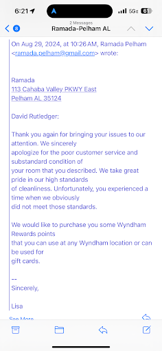 Update, hello Lisa, in response to your reply, I had no stay at Ramada, and will never ever be back at any Ramada ever. I will include your email here to me in response to my request for a refund on a stay that I could not use due to how your hotel is completely infested with roaches. There is no need for a reply you have been very clear how little you care about the...