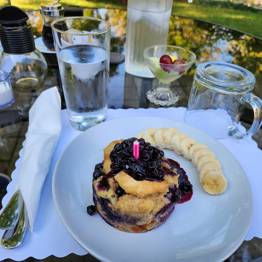 My husband and I stayed at Little River for three days over Columbus Day weekend. The B&B is in a beautiful location, with a babbling river just behind the house. There are Adirondack chairs set on the riverbank so you can sit and enjoy the view. We stayed in the Treetop room on the third floor, and we could see the river and hear the gentle sound of the river from our room! Our room was surprisingly big, and very clean, comfortable and quiet. Breakfast was delivered to us every day at 9 AM, and it was delicious! I was expecting something simple like a selection of muffins, but we were served hot items like baked French toast or a spinach frittata. The one drawback was the covid precautions that the hosts took. We were unable to eat breakfast in the dining room and needed to eat in our room, which took away from the sociability of meeting other guests. However, there was a table in our room, so it was comfortable to eat there. All in all, it was a great place to stay, and we will stay there again if we have reason to visit...